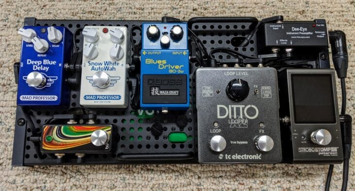 PRO TIP 4: Having all your pedals around and putting together the signal chain every time you play is not the best way to go. Believe me, once I got a pedal out of my backpack and a knob was completely gone, knocked out on the train trip to the venue.