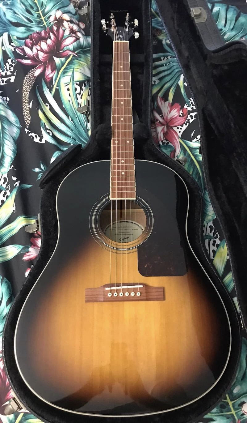Ok, before I start, I just want to say that I’m a huge Beatles fan. That means this guitar struck me at an emotional level with its look-a-like vibes. I won’t tell you it sounds like a ‘60s Gibson J-45, but it sure does look like one. Especially in the vintage sunburst finish.