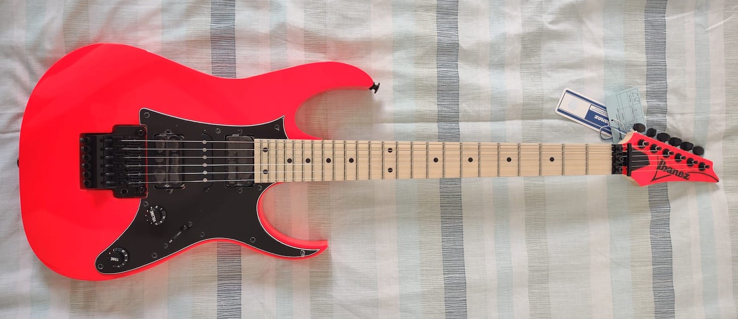 Japanese guitar builders Ibanez are incredibly popular with shredders worldwide, from Steve Vai to Polyphia’s Tim Henson. It’s no surprise that the Ibanez Genesis RG550, with its highlighter-yellow finish (although I got my hands on the Road Flare Red) and exaggerated points, is yet another great entry from the guitar-building titans.