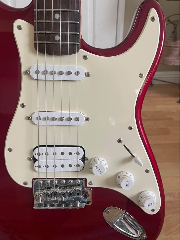 Fender Hendrix Voodoo Child Strings on my Squier Strat (the color's called Candy Apple Red)