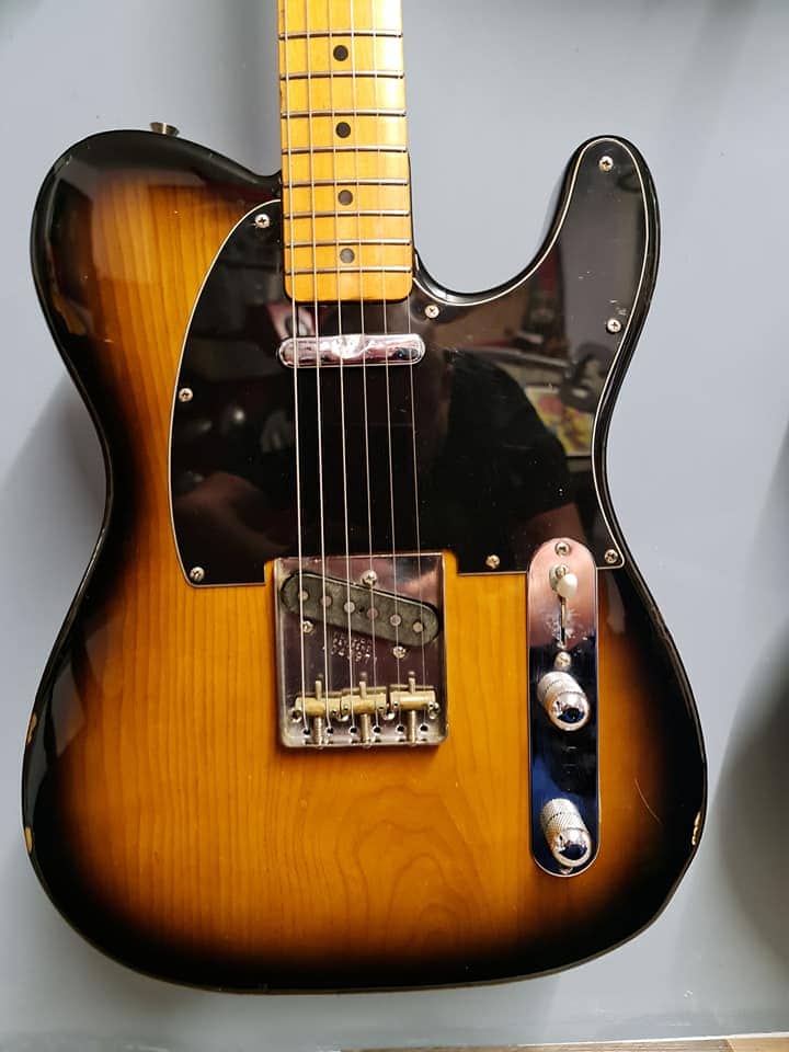 Let me finish with a little illustrative story. Working for the Fender dealer we took a used MIJ Fender Telecaster in red sparkle with a factory Bigsby. I said to myself “Amazing backup for the CS tele!”