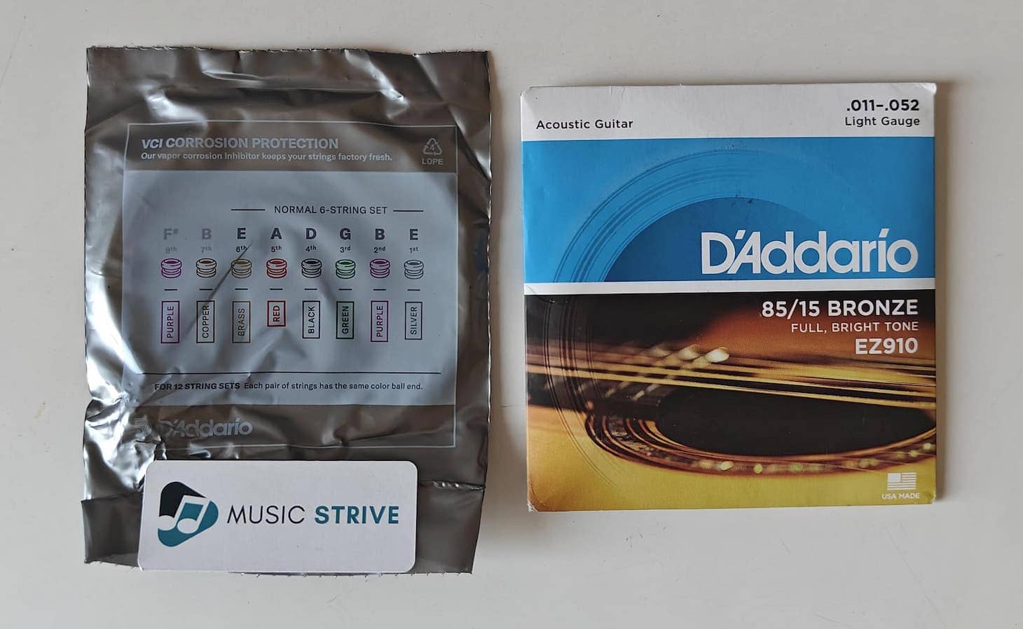 D’Addario, for example, uses different colors than Fender. D’Addario luckily includes a handy legend on the back of its packaging that shows what color each string is labeled with.