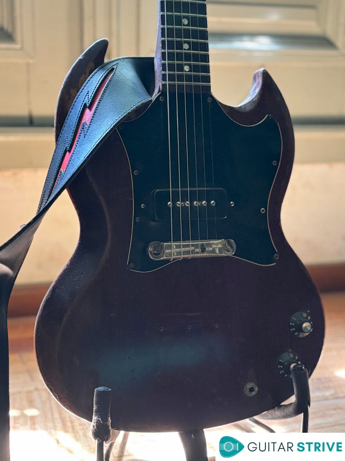 - I won’t use any stand that won’t grab it by the neck – I own several guitar stands that work by keeping the guitar steady from the bottom. Those won’t help when the other band’s roadie turns around and accidentally knocks it off. You can’t say “I’m sorry” after dropping a ‘60s SG, right? Well, with a neck-grabbing stand, it will swing but won’t fall. I like the Hercules. They’re bulky, but worth the hassle.