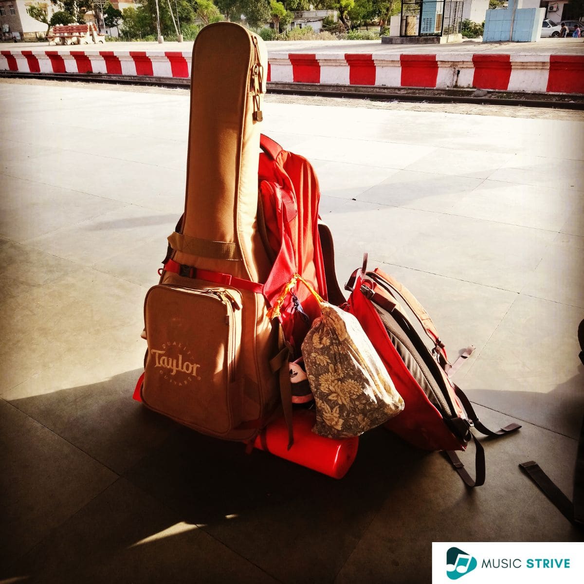 The guitar you’re taking on the road with you will go through a lot. In my case, my Baby Taylor traveled with me on a myriad of dusty buses, packed trains, and walked miles strapped to my back. We walked under the dazzling sun, the cold wind, and the rain.