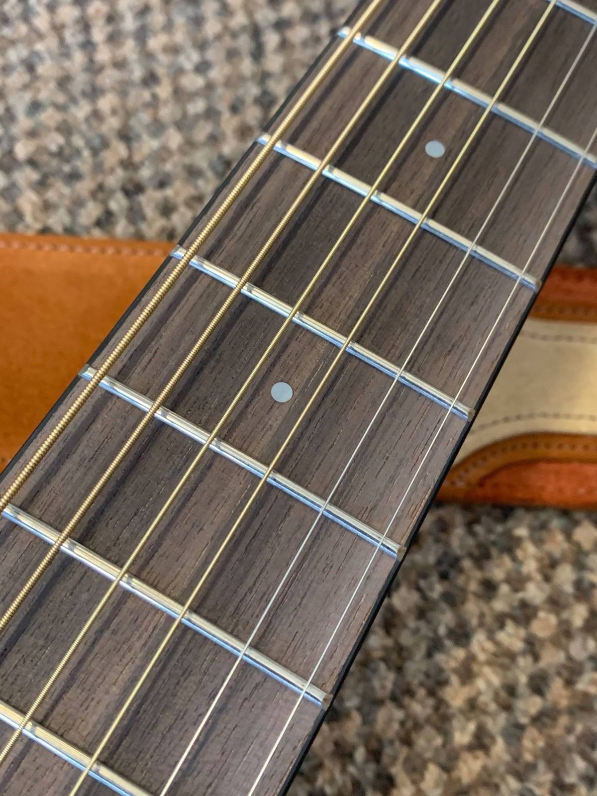 I also found the action out of the box to be very comfortable. I’ve found on some acoustic guitars that lower action can cause the notes to fret out or lose sustain, but that’s not the case here.